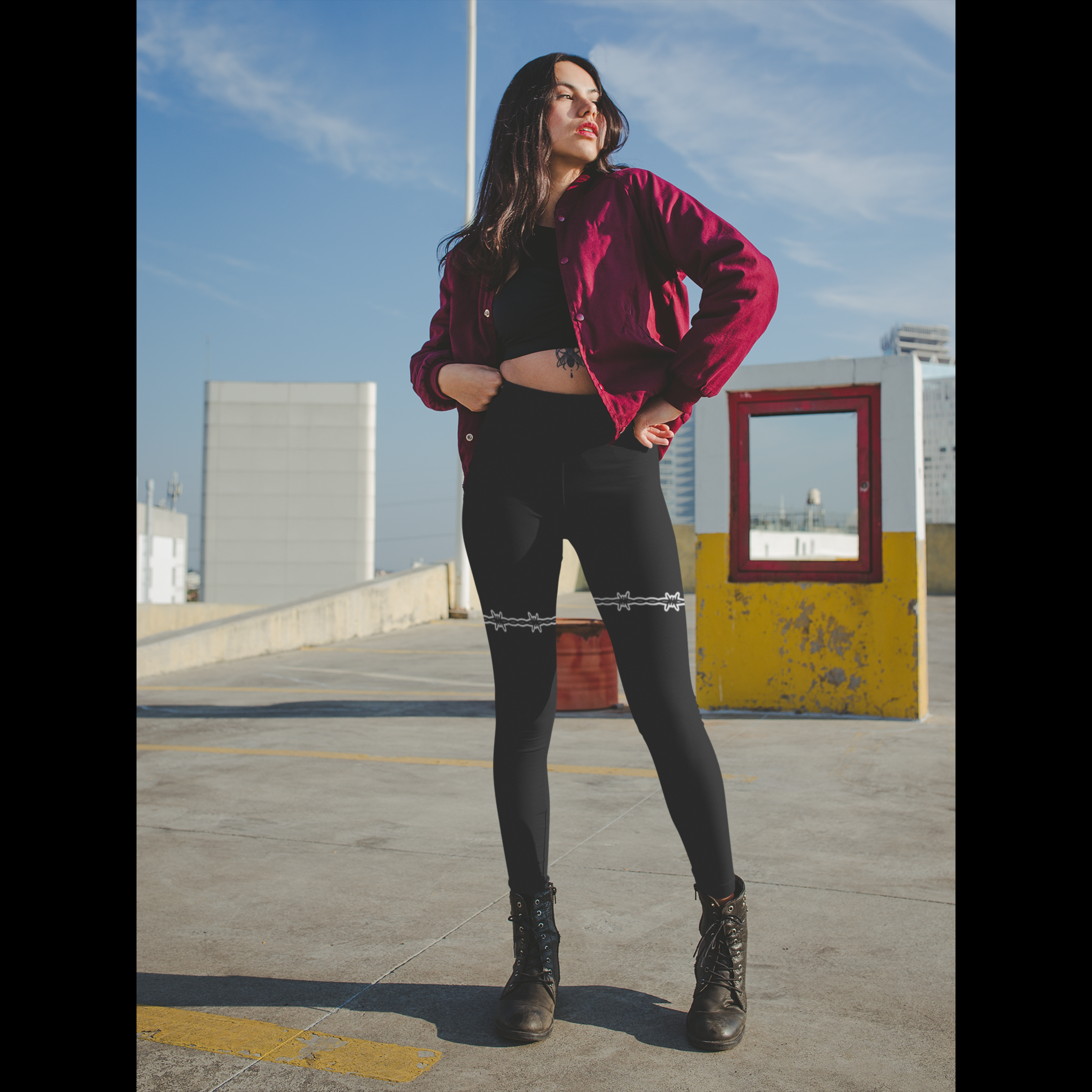 Barbed Wire Black Leggings – Alternative Fitness Wear, Gothic Workout Leggings
